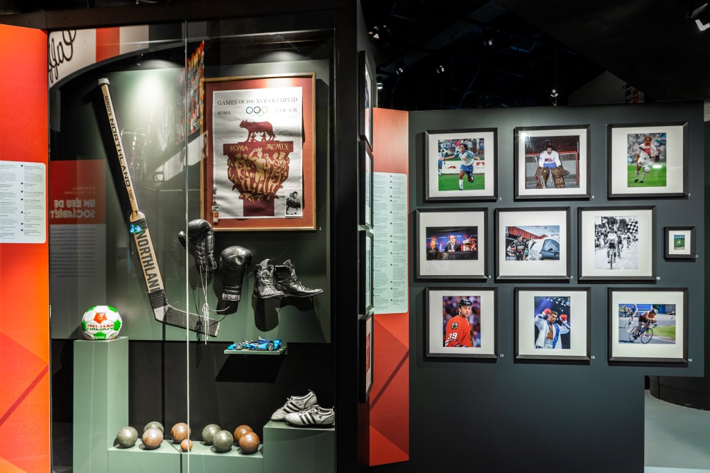 La seconda zona è quella dedicata ai bar, ai Café, luogo simbolo di socializzazione, dove ci si ritrova e dove si parla di tutto, di sport, politica, dell’internamento, di attualità, di conflitti linguistici raccontata, oltre che con gli oggetti, come le biciclette Quilicot o Marinoni, anche attraverso estratti di film e documentari che evidenziano la partecipazione della comunità italiana al dibattito sociale.