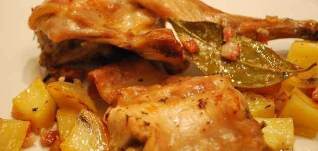 Mettere il coniglio in padella con olio e sale (qb) per farlo rosolare, aggiungere la cipolla, il peperoncino e le foglie d’alloro. Utilizzare un po’di concentrato di pomodoro per far leggermente colorire il coniglio, sfumare con aceto e lasciar cuocere coperto per 40 minuti a fuoco lento. «Il coniglio solitamente è quello che uno alleva a casa. Quindi – afferma Ines – è ben nutrito, tutta carne buona e genuina.