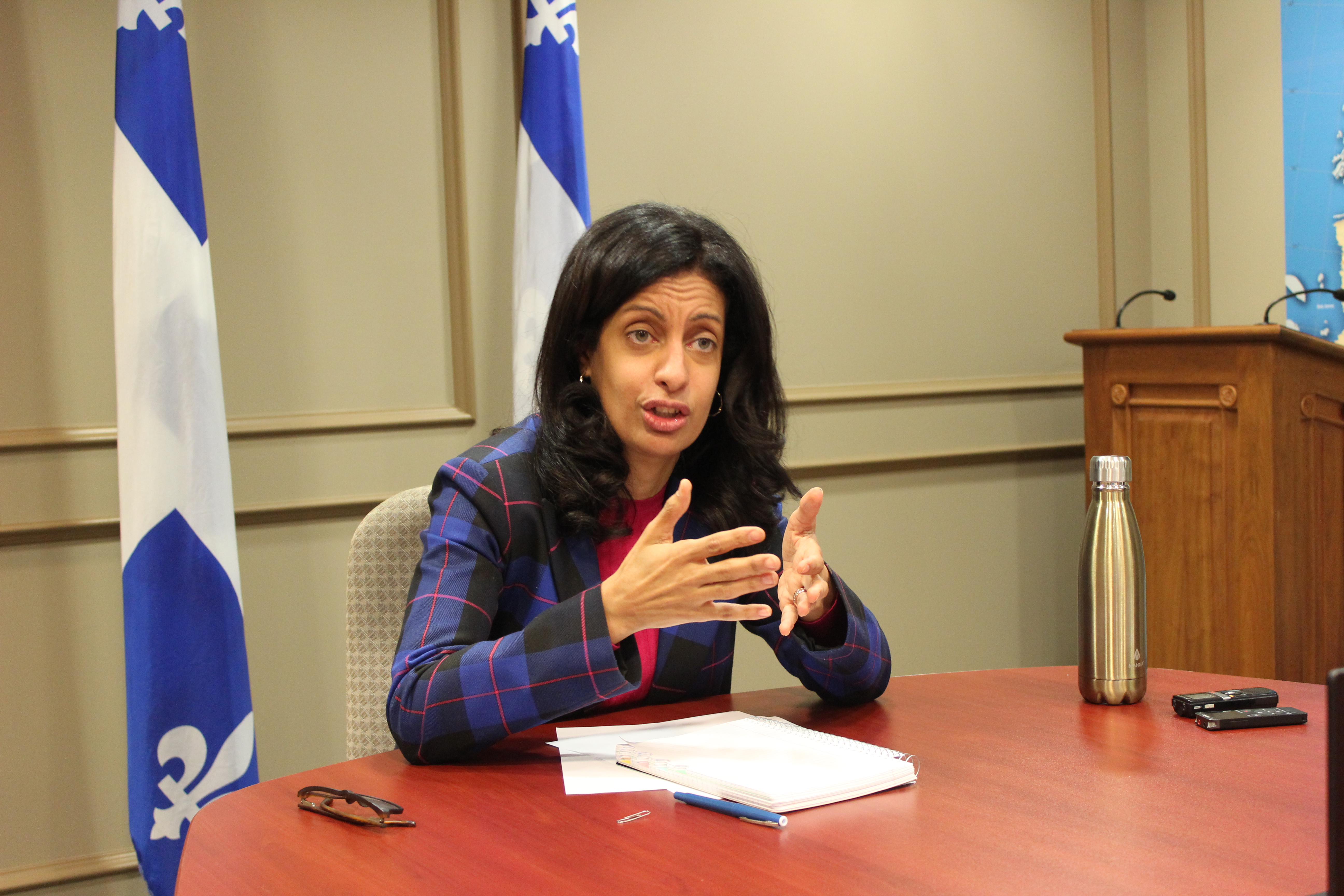 Dominique Anglade, capo del Partito Liberale del Québec, incontra la stampa etnica