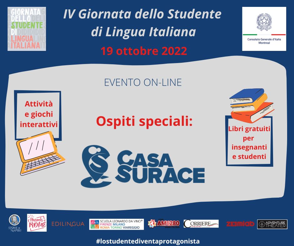 Il 19 ottobre i ragazzi di Casa Surace saranno gli ospiti speciali e per l’occasione coinvolgeranno il pubblico in giochi interattivi sulla cultura italiana.