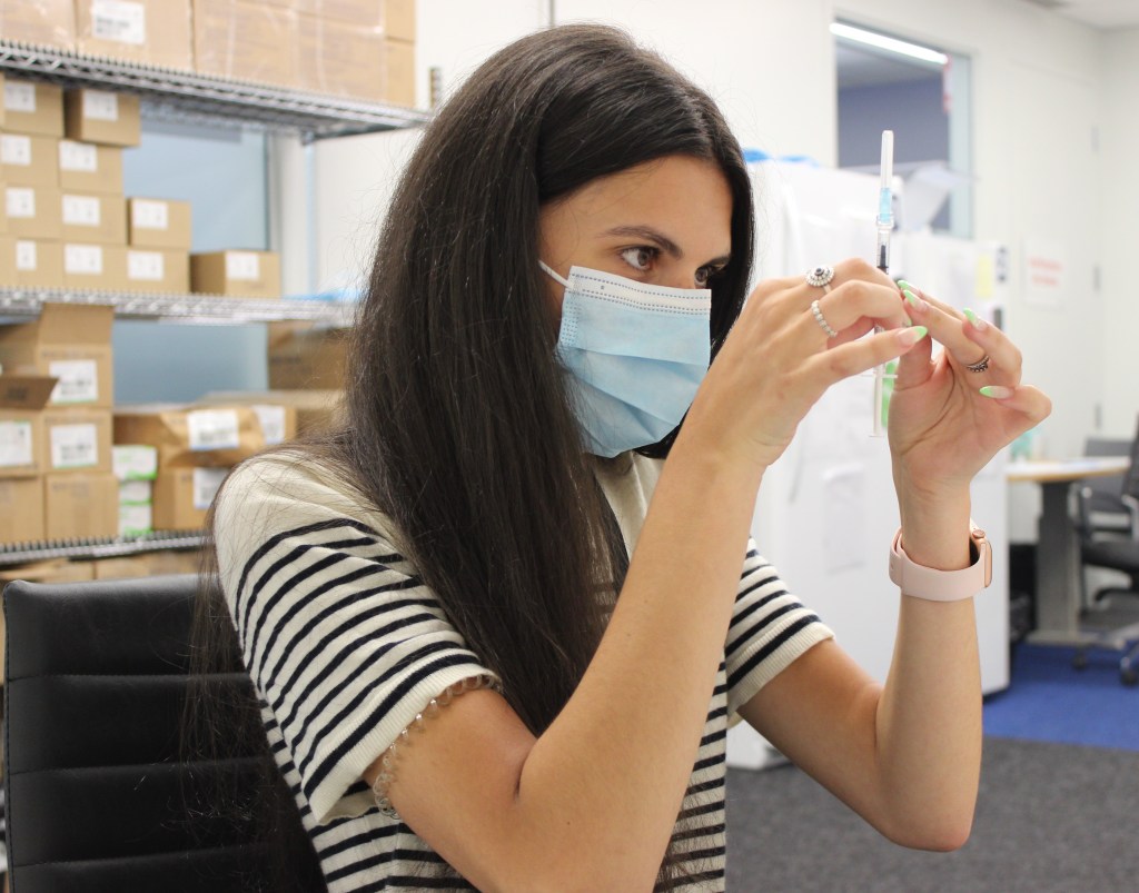 «Assisto – spiega – le differenti posizioni come, ad esempio, la farmacia. Verifico che nella siringa ci sia la giusta dose di vaccino e aiuto a preparare e a portare il materiale necessario affinché le infermiere possano somministrare il vaccino avendo a portata di mano tutto l’occorrente, senza dover cercare altro. Verifico che tutto sia ben in ordine, che ci siano le dosi in frigorifero e che siano ben conservate. Inoltre, assisto la gente per la circolazione nel sito e per la fase successiva alla vaccinazione quando devono attendere 15 minuti per un’eventuale reazione al vaccino».
