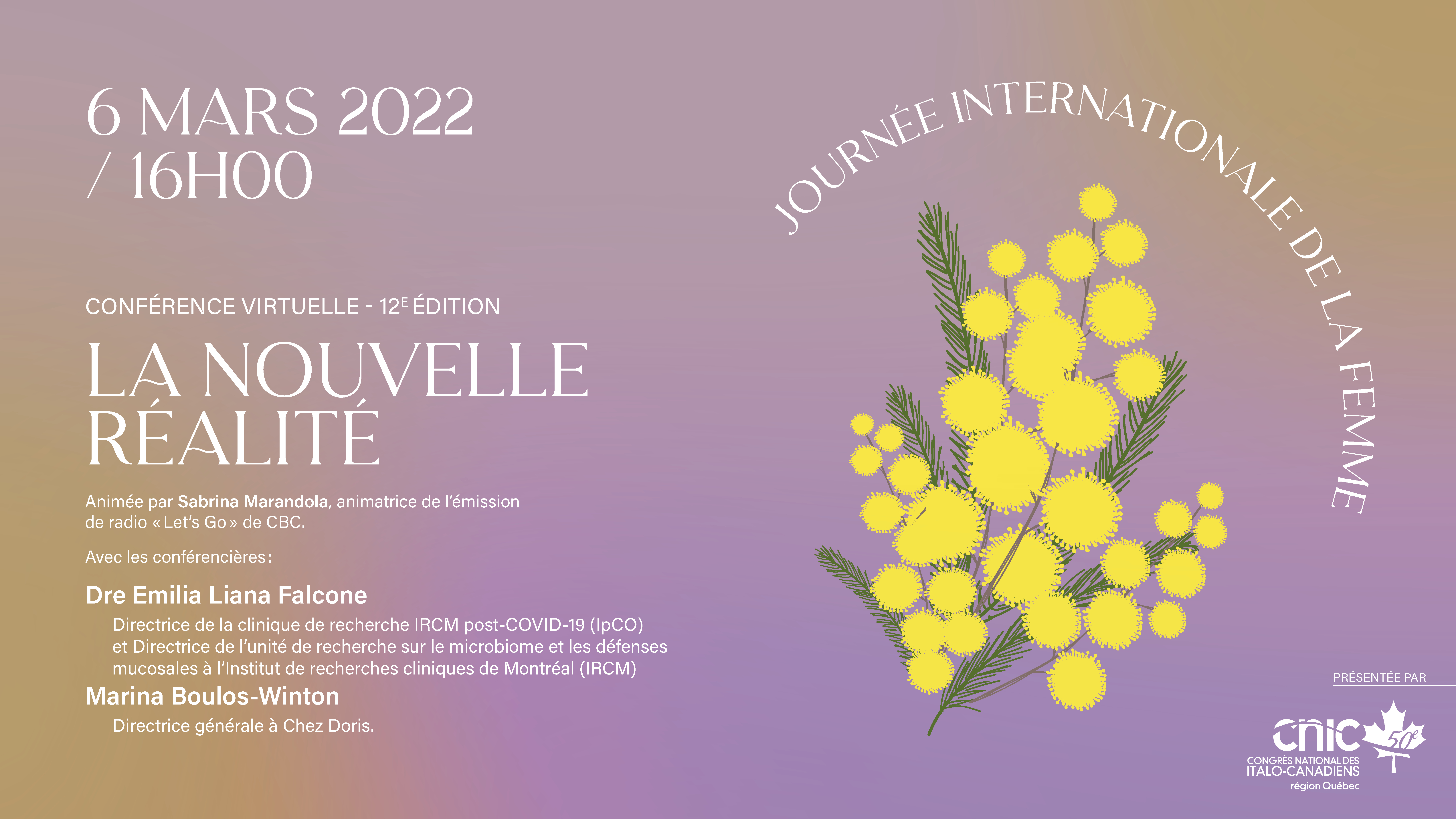 Montréal – Il 12° anniversario del tanto apprezzato appuntamento con la Giornata Internazionale della Donna, organizzato dal Congresso Nazionale degli Italocanadesi (CNIC), Regione Québec, sarà di nuovo virtuale quest’anno.