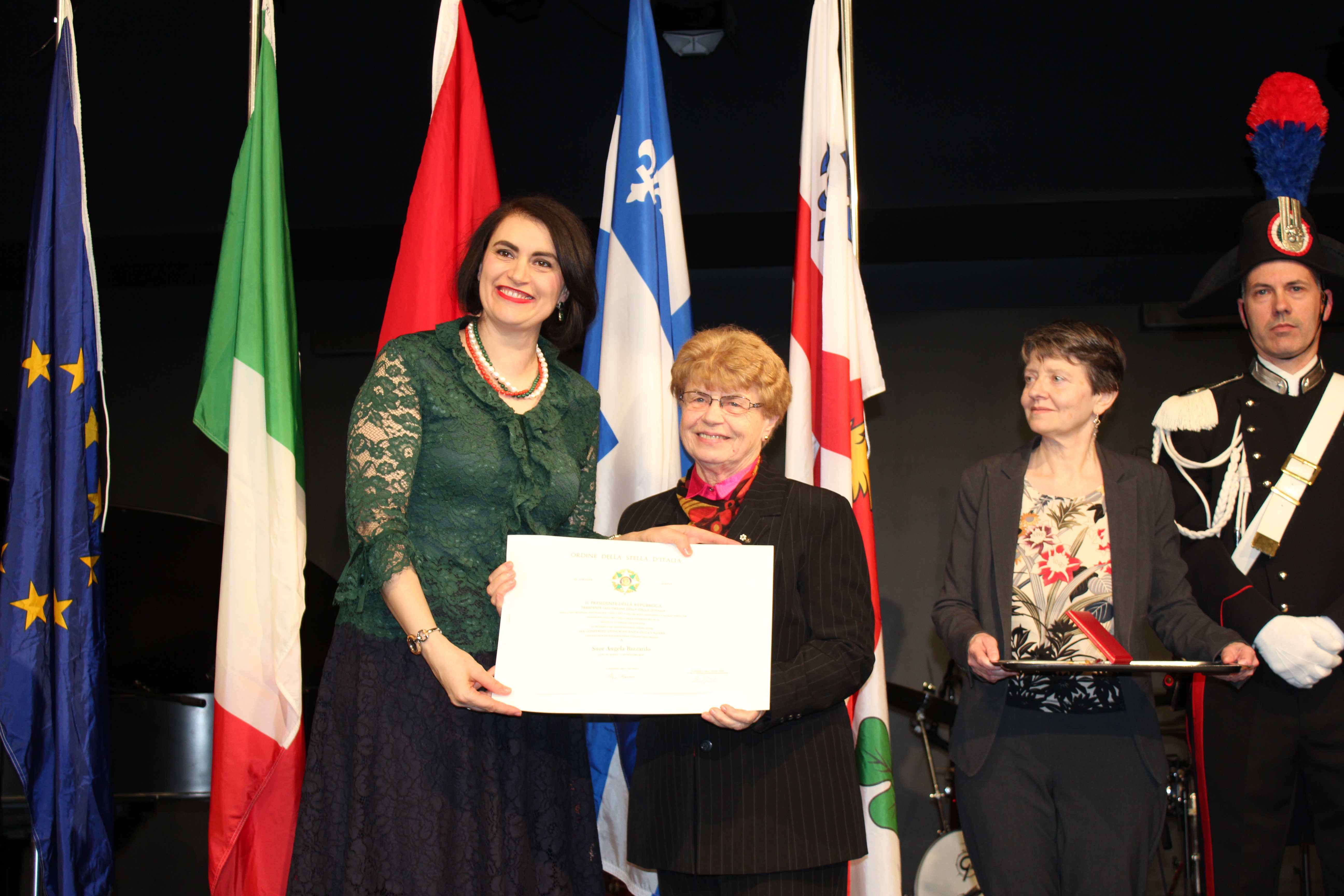 Il 2 giugno scorso, durante la Festa della Repubblica Italiana svoltasi alla Casa d’Italia, Suor Angèle, al secolo Angiola Rizardo, nata a Cavaso del Tomba (Treviso) nel 1938, ed emigrata in Québec nel 1955, è stata insignita, insieme ad altre personalità della nostra comunità, dell’onorificenza di Cavaliere della Repubblica Italiana.