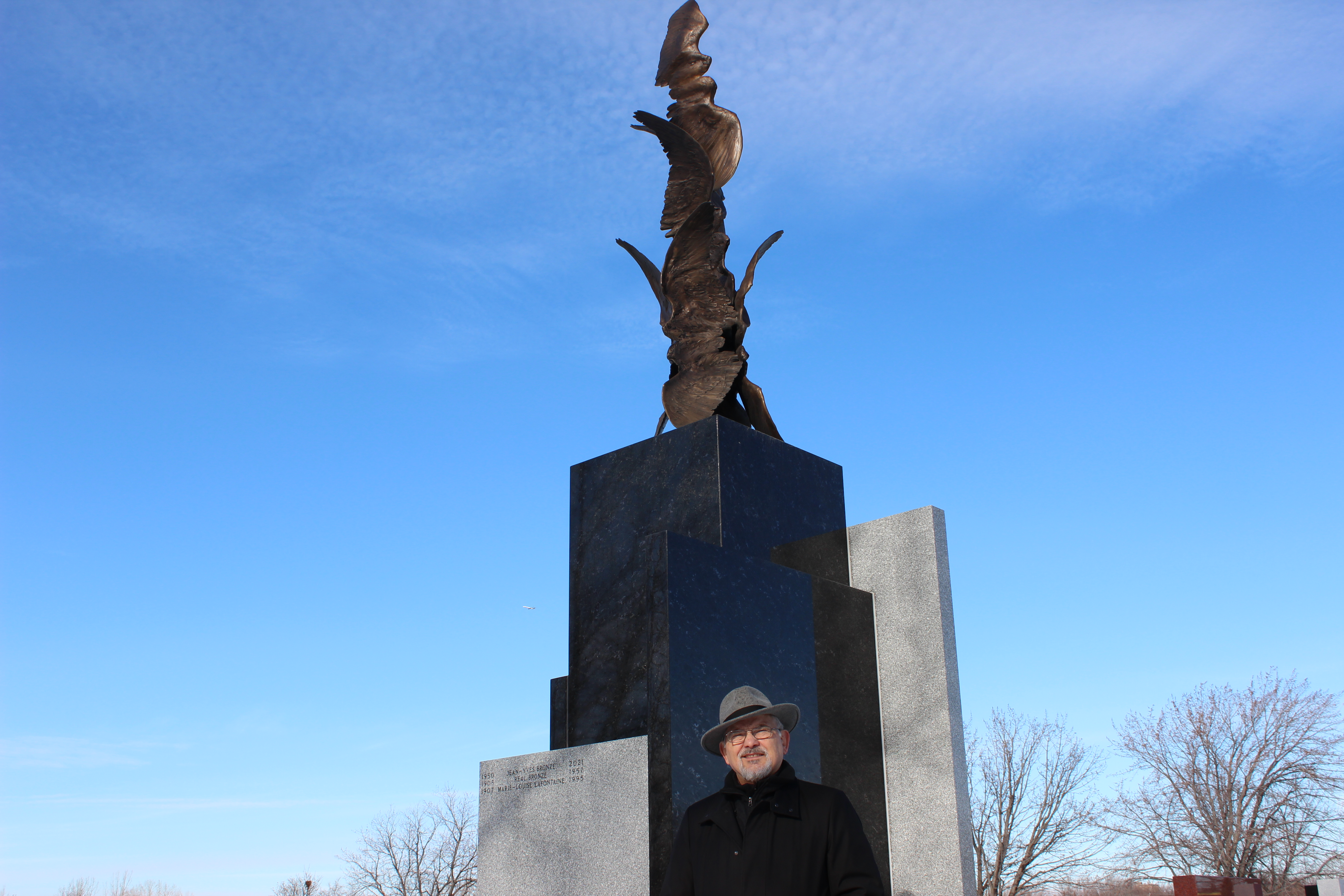 Per questo la scultura in bronzo è formata da una serie di ali sovrapposte in un movimento circolare che va verso l’alto. Ogni ala rappresenta una persona. Avrei voluto fare la scultura con 30-40 o più ali, per renderla ancora più ricca, per dare veramente il senso di pienezza al monumento, un po’ come quando sei a Pizza San Marco a Venezia e vedi i piccioni involarsi tutti insieme. Poi ho dovuto fare i conti con la realtà, con il budget, con gli spazi e con altri problemi. Ma il senso ascensionale, la tensione verso l’alto del monumento, “l’envol”, rimane tutto. Forse in questo modo – conclude lo scultore – si può riuscire ad accettare meglio un realtà che non si può negare, quella della morte vista come il passaggio da una dimensione ad un’altra».